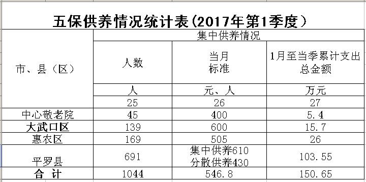 政务公开:石嘴山市特困人员供养情况统计表(2017年第1季度)